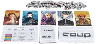 In Coup, you want to be the last player with influence in the game, with influence being represented by face-down character cards in your playing area.